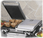 Double Knock Out "Double Champion" Indoor/Outdoor Grill | GGR64 | Over 200 Sq. Inches of total grilling surface on each independently heated grilling side - No mixing of flavors. Both grill sides have independent variable temperature controls and 30 minute timers with auto shut-off. | 200+ sq in. | Dual electronic timers, dual variable temperature controls | $149.99 | $129.99 |  |