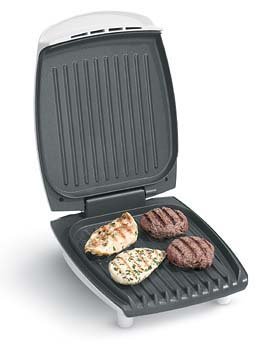 Family Size Plus Grill | GR26CB | This family-size version grills four or five burgers or chicken breasts at once. Color: White. | 84 sq. in. / 9 x 9 in. | cookbook | $79.99 | $59.99 |  |